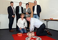 Bei neuer Rotkreuz-Kampagne für Unternehmen bekommen Arbeitnehmer im großen Stil einen Einblick in Erster Hilfe – AOK zahlt ein Drittel der Kosten – Landrat Rosenke geht mit gutem Beispiel voran