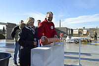 Ausgewählte „Erinnerungsstücke“ wurden von Bad Münstereifels Bürgermeisterin Sabine Preiser-Marian und DRK-Kreisgeschäftsführer Rolf Klöcker einzementiert – Attraktive Einrichtung entsteht auf rund…
